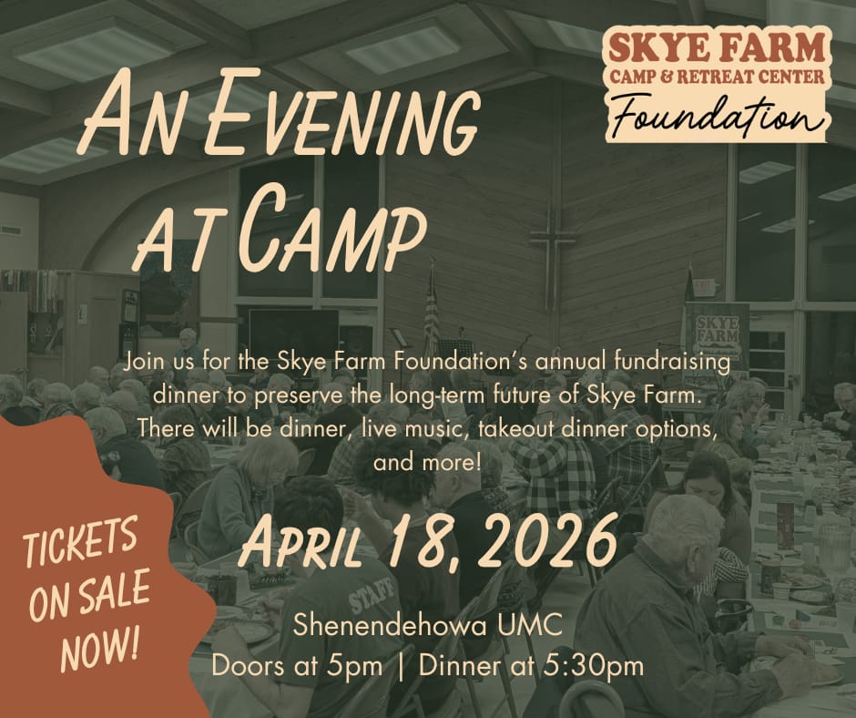Tickets are on sale now for the Skye Farm Foundation’s 3rd Annual “An Evening at Camp” dinner! This year’s dinner is on Saturday, April 18th at Shenendehowa UMC, with doors opening at 5pm.