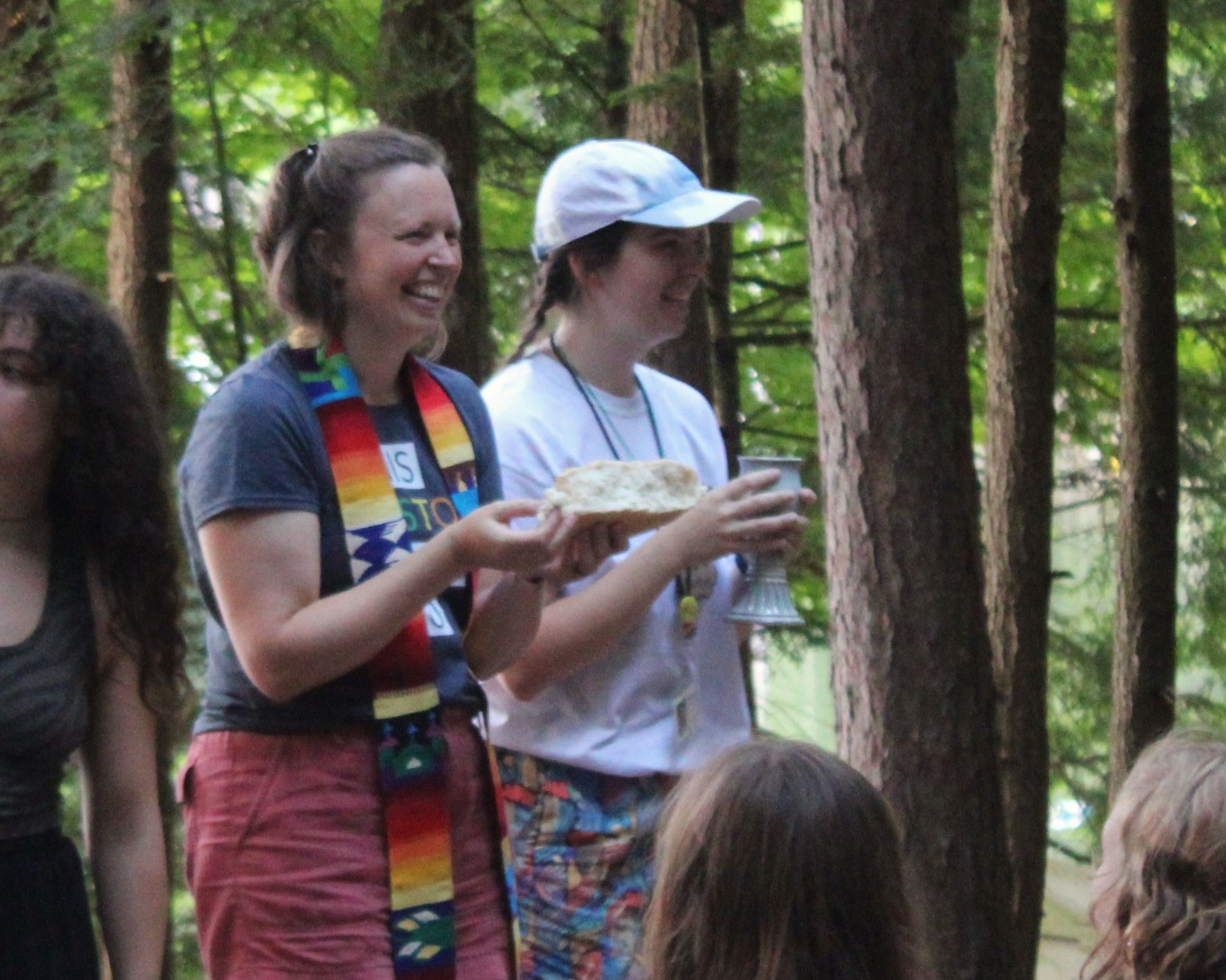 ![]() A couple of Voyagers campers with their counselor in 2025 | Pastor Anna as chaplain at Skye Farm in 2024 |